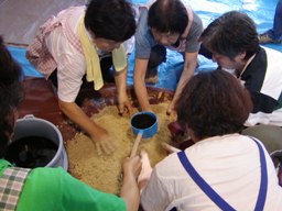 8月7日 ボカシ肥料づくり 環境問題と聞くとなんだか難しく感じる方。ご安心ください。出来ることから取り組むといたって簡単です。例えば身近にある物、生ゴミ、これを何とかしたいと思いませんか。エコビレッジ交流センターの野村指導員が講師になり、生ゴミやEM菌を使っての肥料づくりを体験しました。参加者の中には定年退職して農業をやりたいと、やる気満々の方もあり。豊かな堆肥ができるのが楽しみです。 |