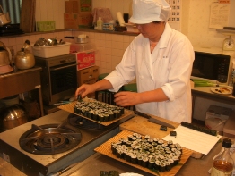 コナギ大作戦 コナギと言う名前の植物をご存知でしょうか。稲作農業を行うと、この植物が田んぼに生えてきます。特に、コウノトリを呼び戻す農法や有機農業を行うと、この植物との戦いになります。しかし、雑草と考えず、使ってはどうでしょうか。今回はコナギの天ぷらやお寿司、ティシャツをコナギで染めるコナギ染めを行って、出来上がったシャツを見てもらいました。参加者の皆さんも真剣にコナギの活用について考えてくださいました。 |