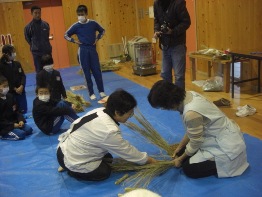 12月23日 しめ飾りを作りましょう もういつく寝るとお正月。お正月は心清らかに新年を迎える場。しめ飾りを飾って祈ります。近頃は売っている「しめ飾り」を買うのが当たり前になってしまいましたが、里山のお百姓さんは育てた稲から作るのが当たり前でした。実際にしめ飾りづくりを体験しました。こういった伝統的知識が日本各地で失われています。何より、藁は、土に返る自然素材です。 |