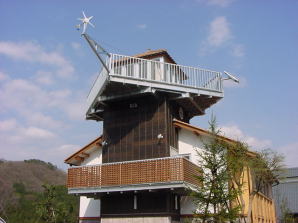 周辺の自然を一望できます。夜は星座観測もできます。また、エコビレッジのシンボルとして、風力発電や太陽光パネルなど省エネルギー設備を導入しています。 |