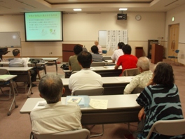 第4回有機農業セミナー 今回は中川清さん、関岡裕明さん、鋸谷茂さんを講師にお迎えしました。県内にも全国に誇る取り組みがたくさんあります。県内の取り組みについて教えて頂きました。中川さんは福井県指導農業士で、農業と共に生きた60年や有機農業についてのお話、関岡さんは環境部門の技術士で、環境コンサルタントのお仕事です。市民と共に取り組んできた生き物と豊かな田んぼづくりについてお話して頂きました。鋸谷さんは森と木の研究所代表で健全な森林と水の関係についてお話して頂きました。 |